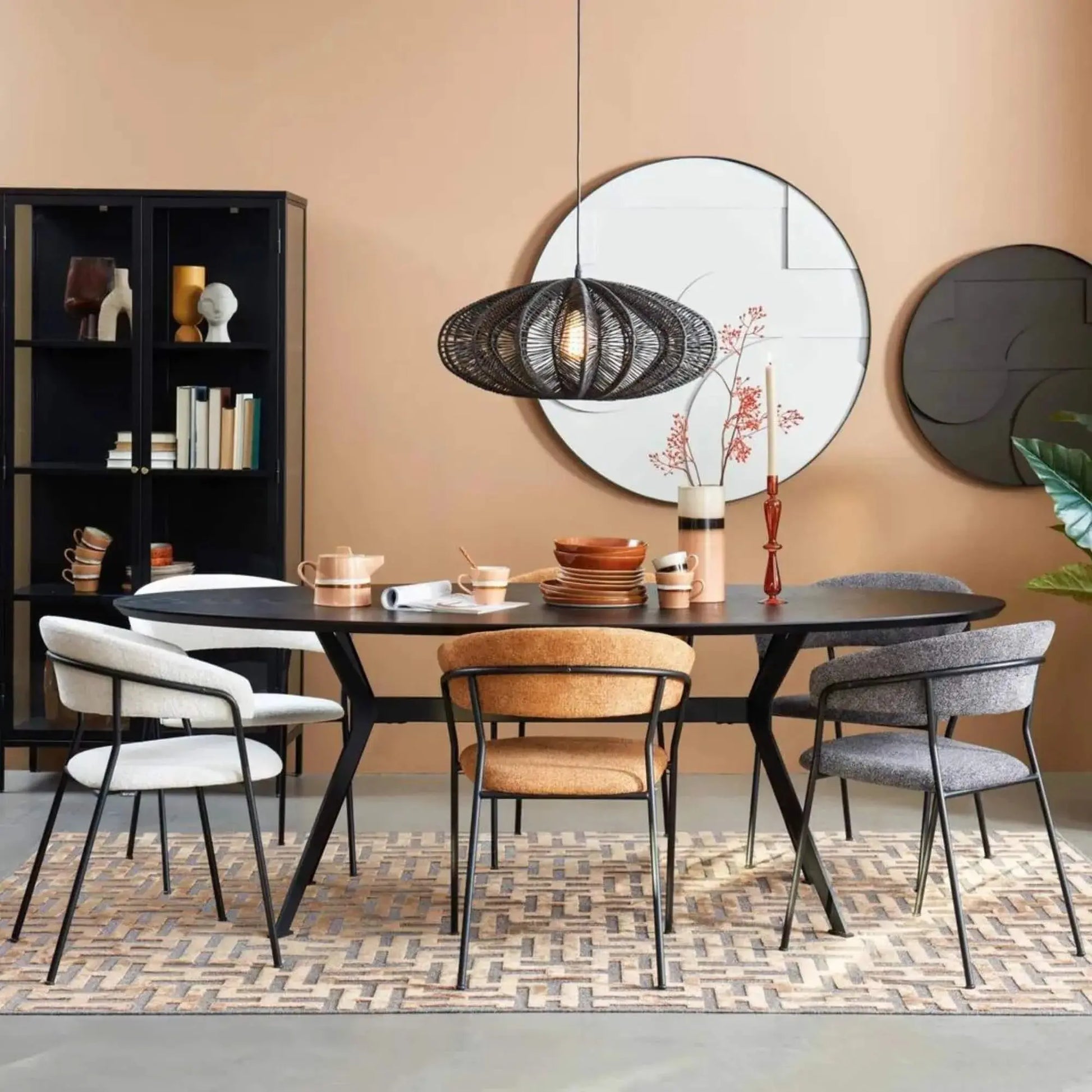 Jojo se distingue par sa polyvalence. Disponible dans différentes couleurs de tissu, cette chaise s’intègre harmonieusement dans divers styles d’intérieur, que ce soit un décor moderne, contemporain ou classique. La bouclette ajoute une texture subtile qui attire l’attention, tandis que les pieds noirs apportent une touche d’élégance.