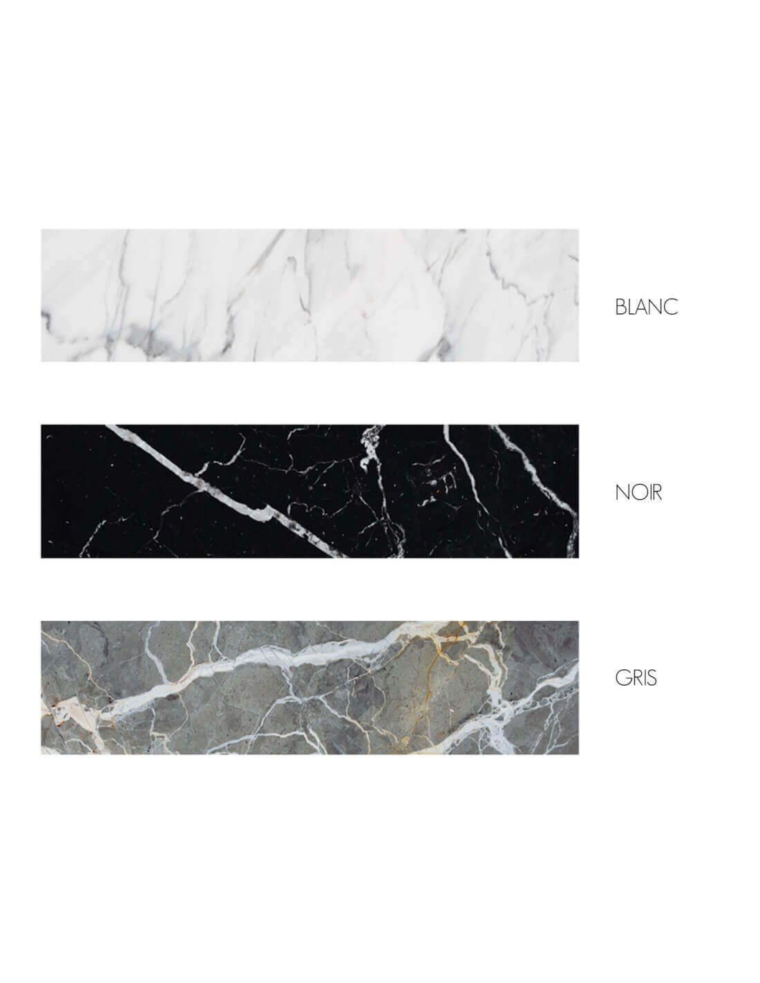 Plateau en marbre naturel : Disponible en finition marbre blanc veiné, noir intense ou gris texturé – chaque pièce est unique.