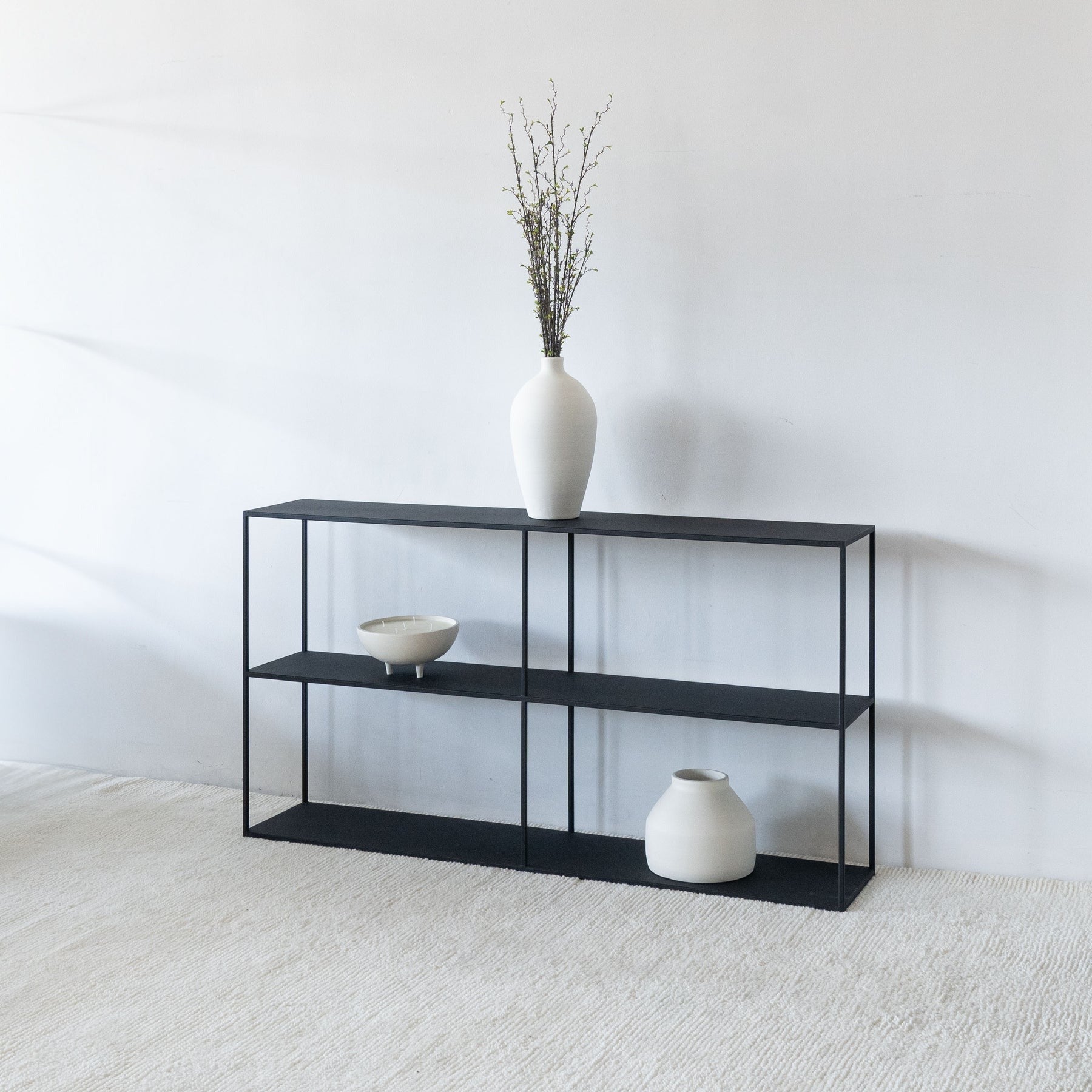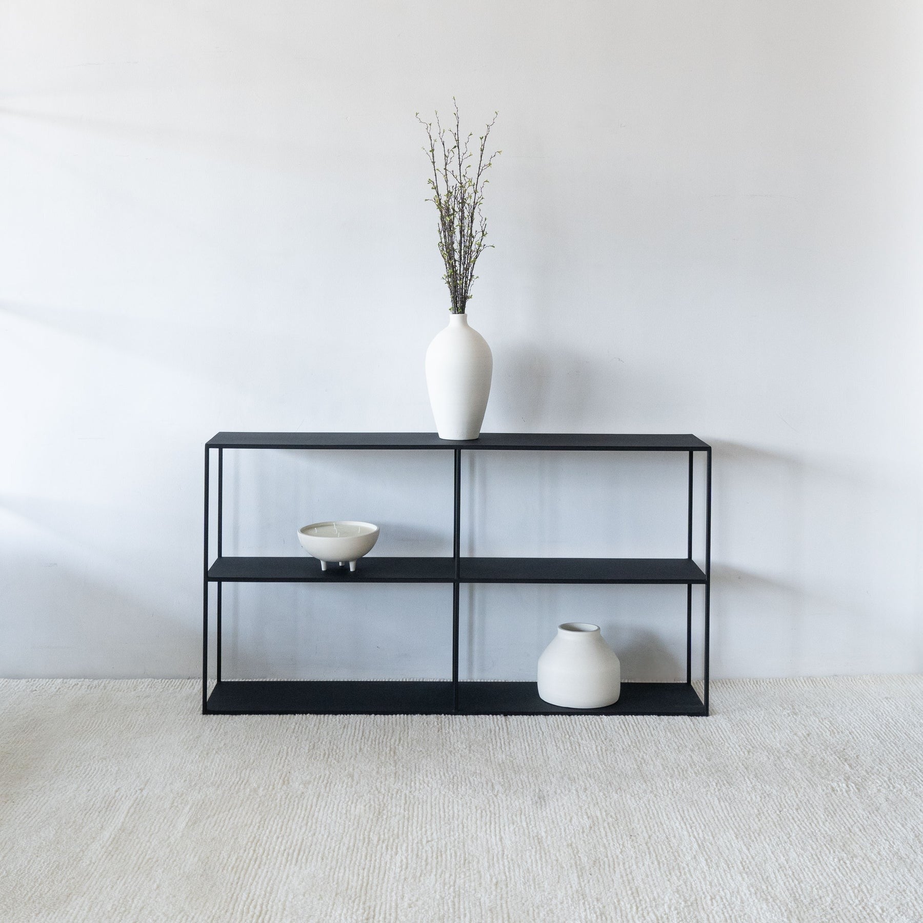 La Console Onyx se distingue par sa structure en acier pleine couche, revêtue d’un revêtement noir poudré. Sobre et contemporaine, elle s’impose comme un élément structurant dans l’entrée, derrière un canapé ou contre un mur.