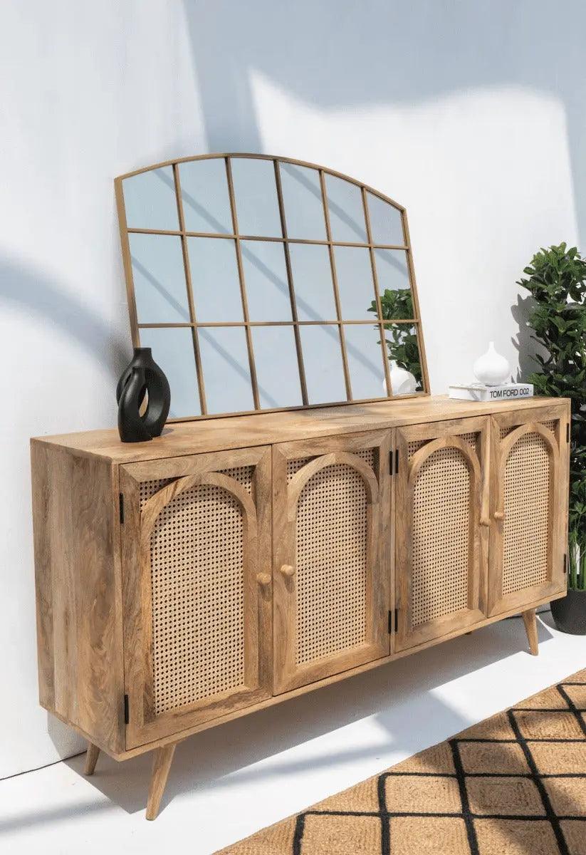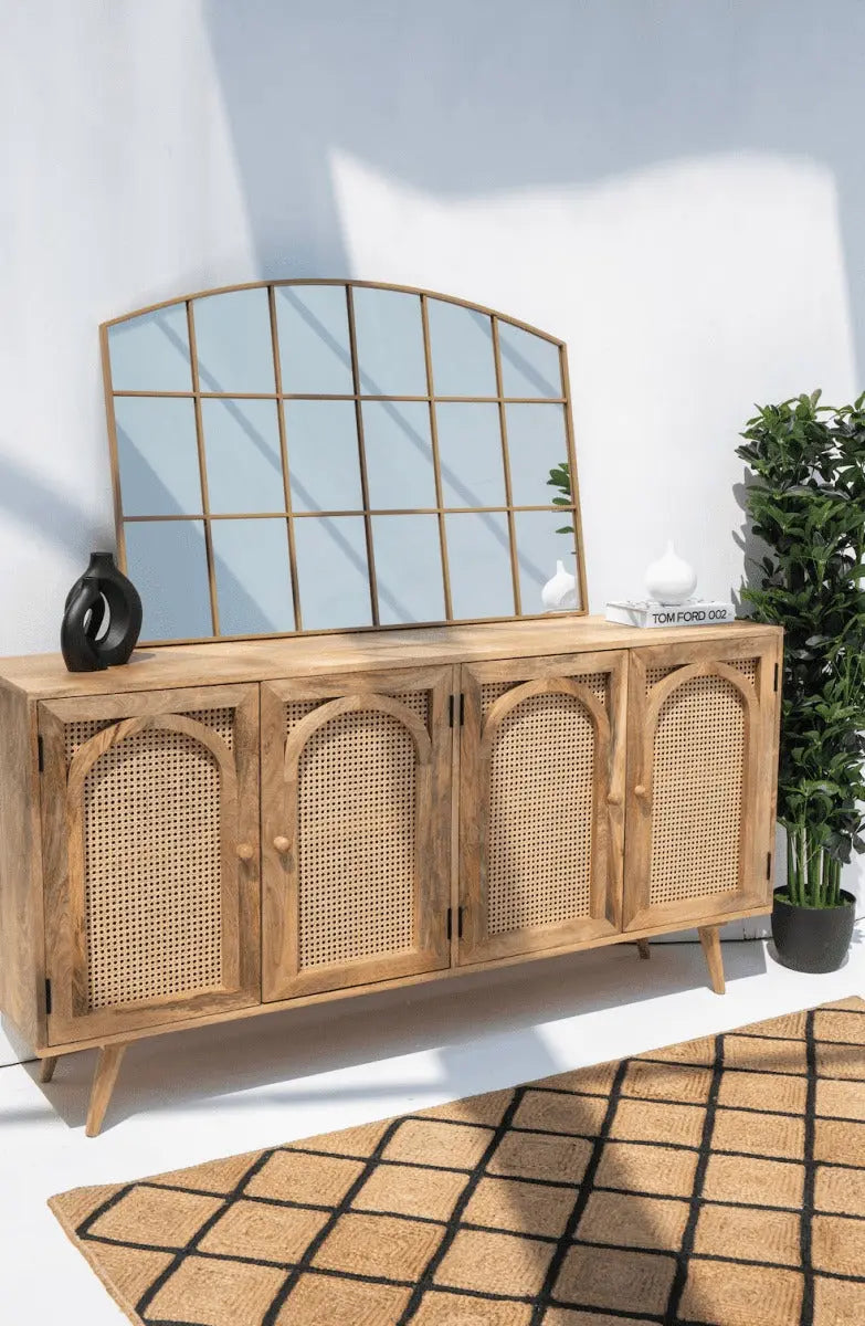 - Design en grilles raffinées : Une structure divisée en sections symétriques qui rappelle les fenêtres cintrées, ajoutant une élégance unique à vos espaces.