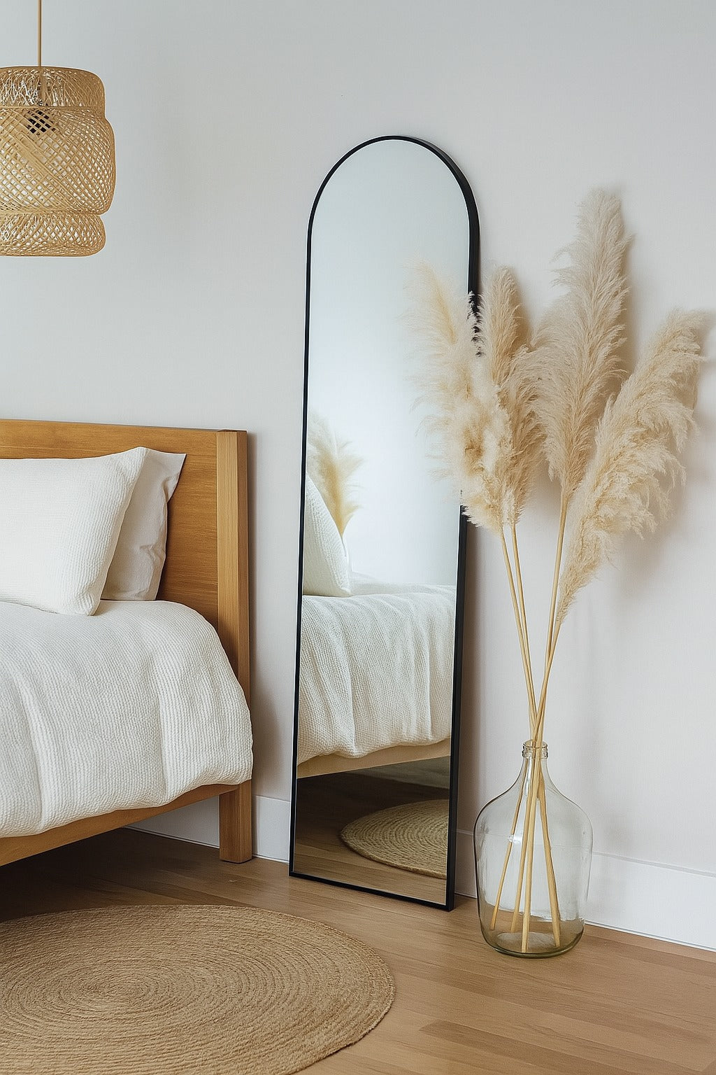 Ce miroir à cadre noir est idéal pour toute pièce : un salon contemporain, une chambre élégante, ou une entrée pratique. Sa forme arquée et ses finitions minimalistes le rendent parfait pour tout intérieur cherchant à allier style et fonctionnalité.