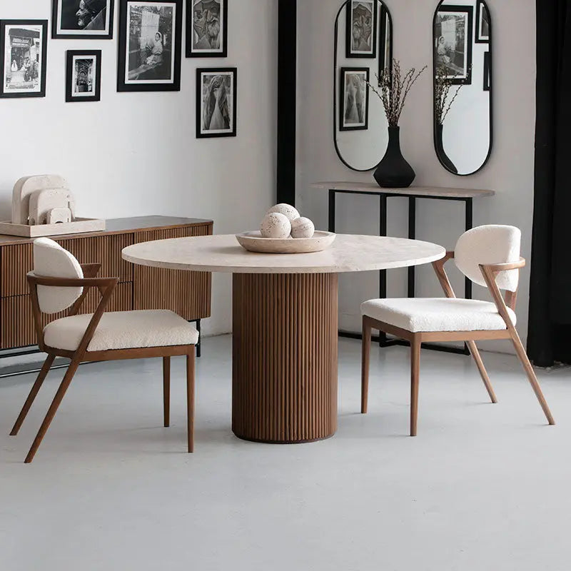 L'union du travertin et du bois fait de notre table à manger "Sahara" une œuvre d'art. Dotée d'un plateau en travertin et d'un pied en bois, cette table embellira aussi bien votre intérieur que votre terrasse. Le travertin, pierre noble prisée par les grands sculpteurs, associé au bois traditionnel, confère à votre salon une élégance prestigieuse. Grâce à sa robustesse et à sa facilité d'entretien, elle est autant pratique qu'appréciée.