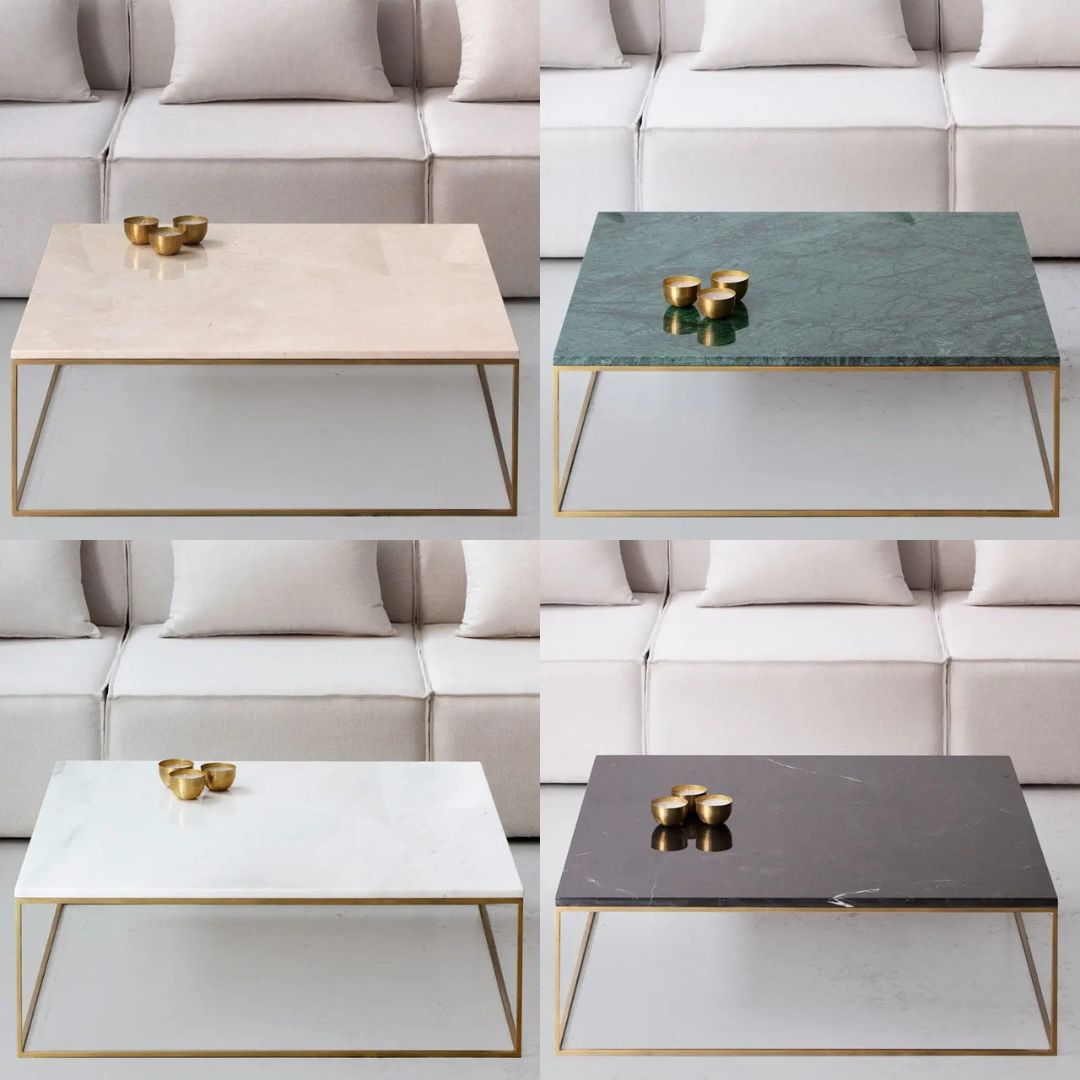 Table Basse Carrée dorée - Divers Marbre et Dimensions