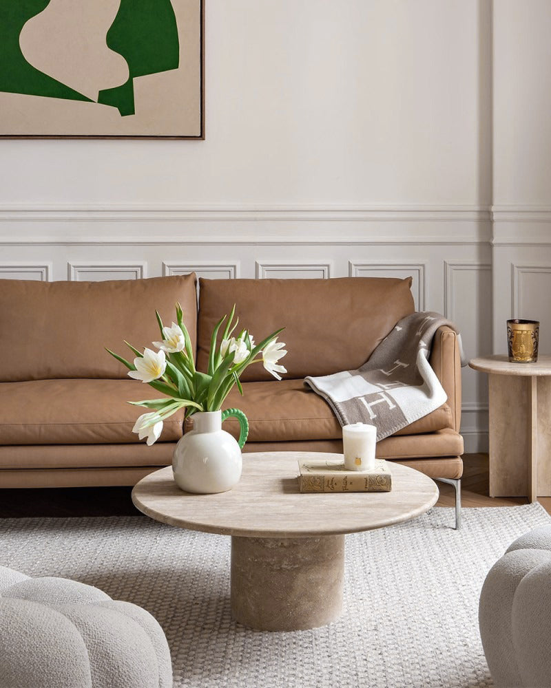 Table basse ronde en travertin Ariadne – Disponible en plusieurs diamètres