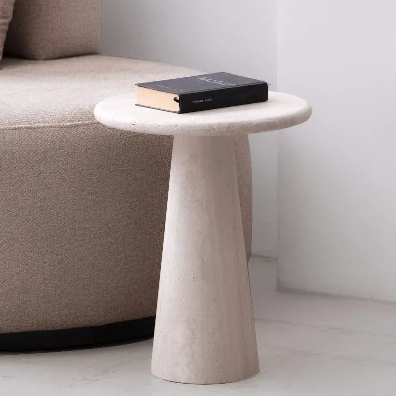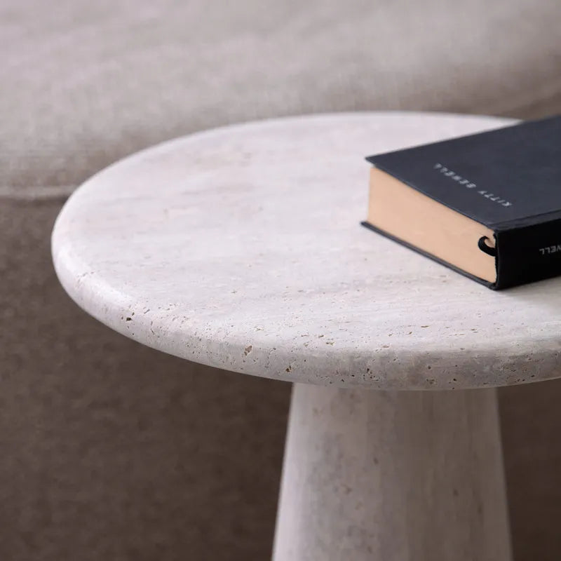 Avec ses courbes douces et son piètement conique, la table Mira rompt avec les lignes classiques pour offrir une silhouette organique et pleine de légèreté. Entièrement sculptée dans du travertin naturel, elle séduit par ses teintes sableuses et ses irrégularités minérales qui rendent chaque pièce singulière.