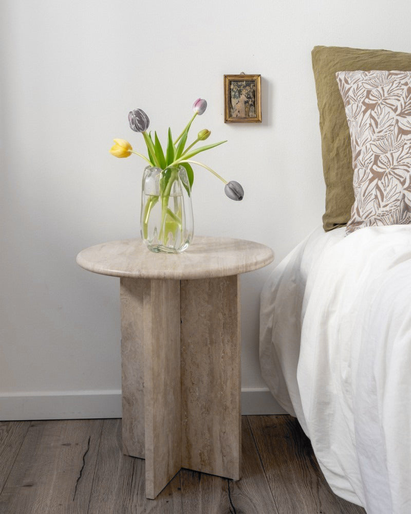 Table d’appoint ronde en travertin Magnifis – Finition naturelle