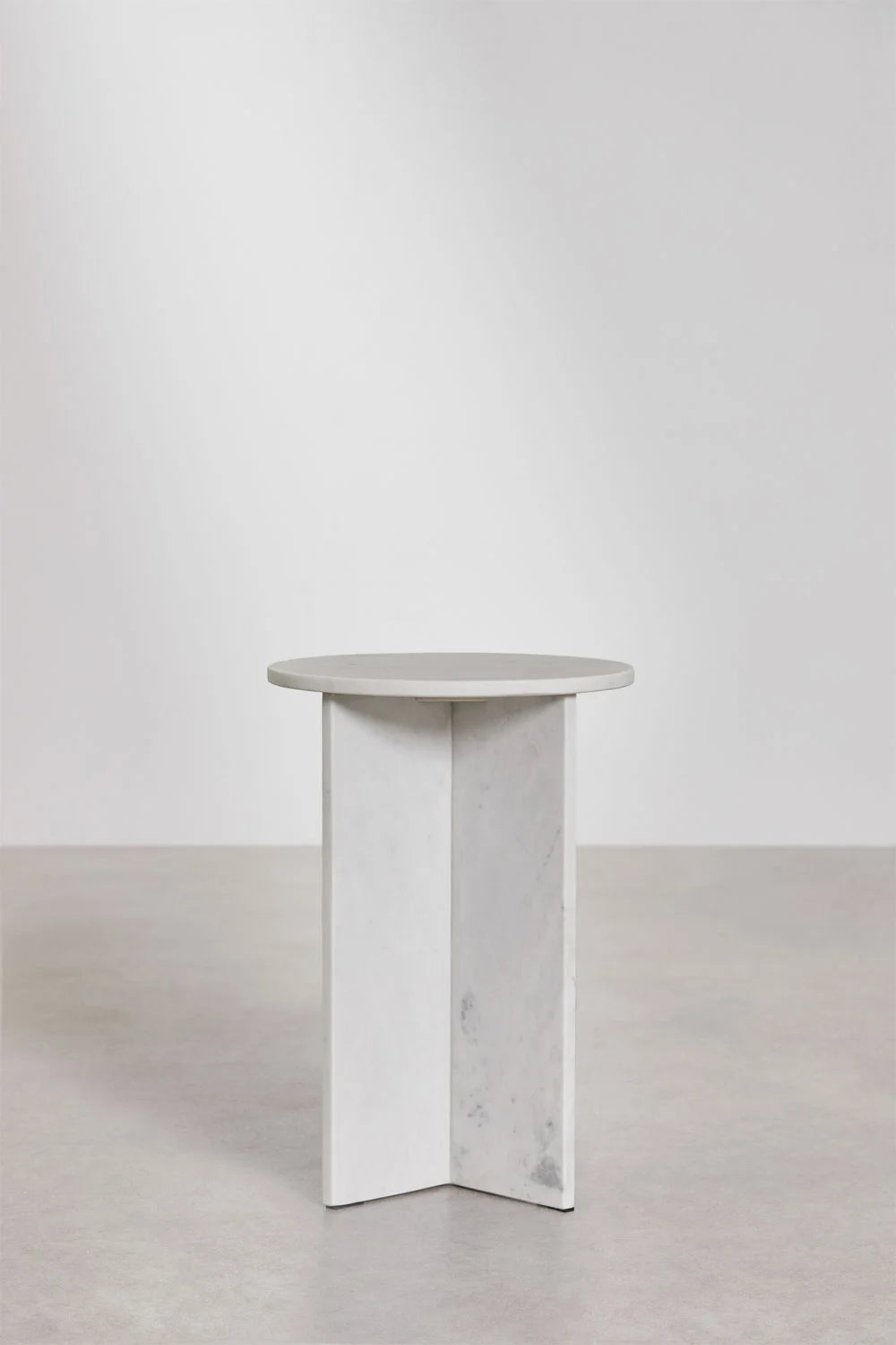 Tables de chevet ronde Ø35 cm en marbre Blanc (Lot de 2 tables)